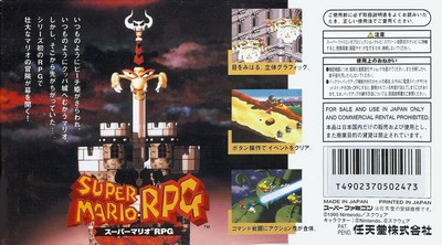 スーパーマリオRPG(Super Mario RPG)は、任天堂とスクウェアが共同制作され、任天堂から1996年3月9日に発売されたアクションRPG。マリオシリーズとしては初の本格的なストーリー性を持った作品であったということもあり、シリーズの主要登場人物であるクッパ・ピーチの性格はこの作品においてほぼ完成され、現在の作品にも受け継がれている。ストーリーは終始ギャグを交えた軽妙な雰囲気で展開されていく。戦闘で用いる武器もパンチやシンバルなど、一般的なRPG作品に比べると平和的。